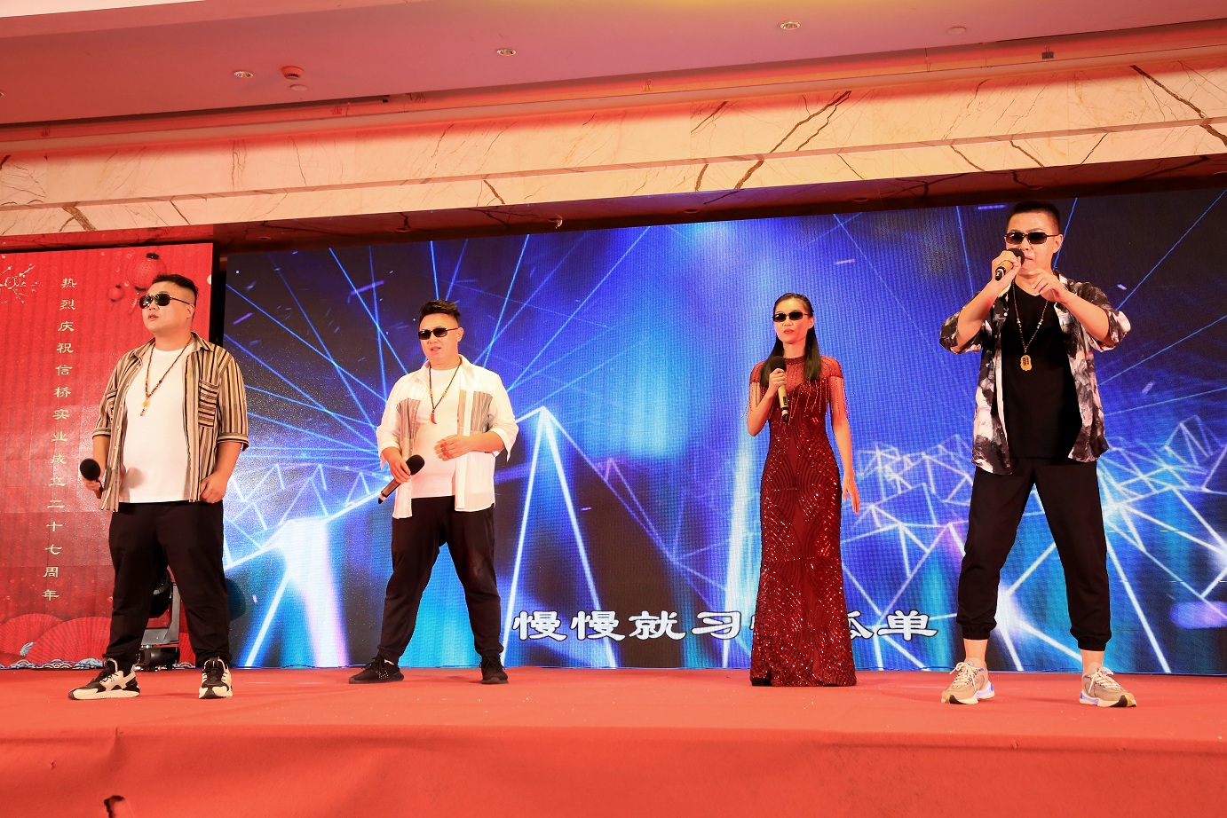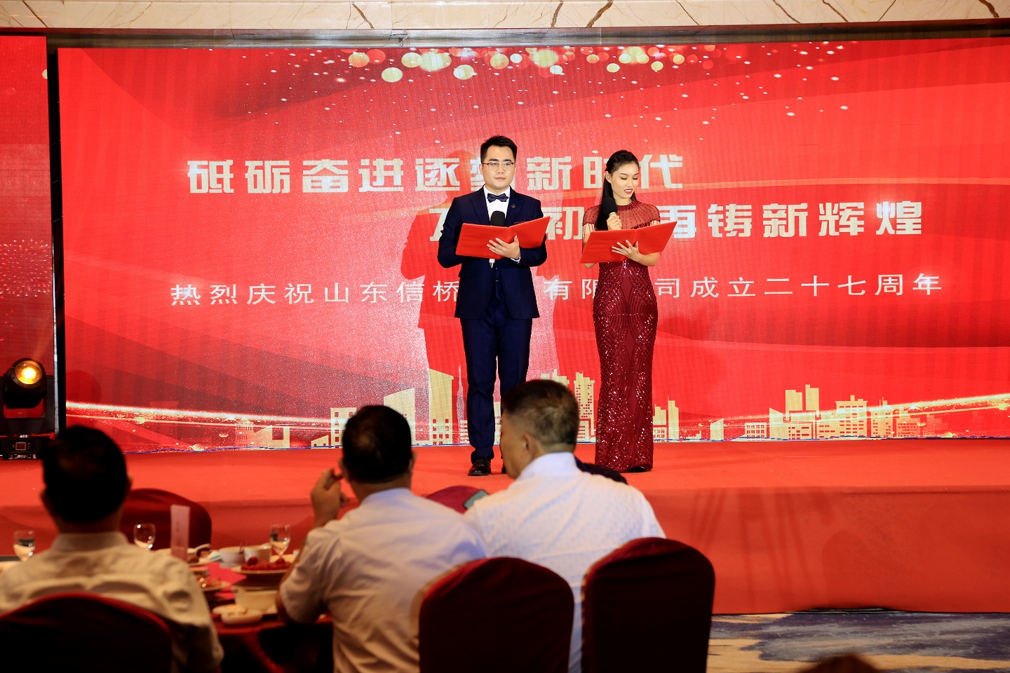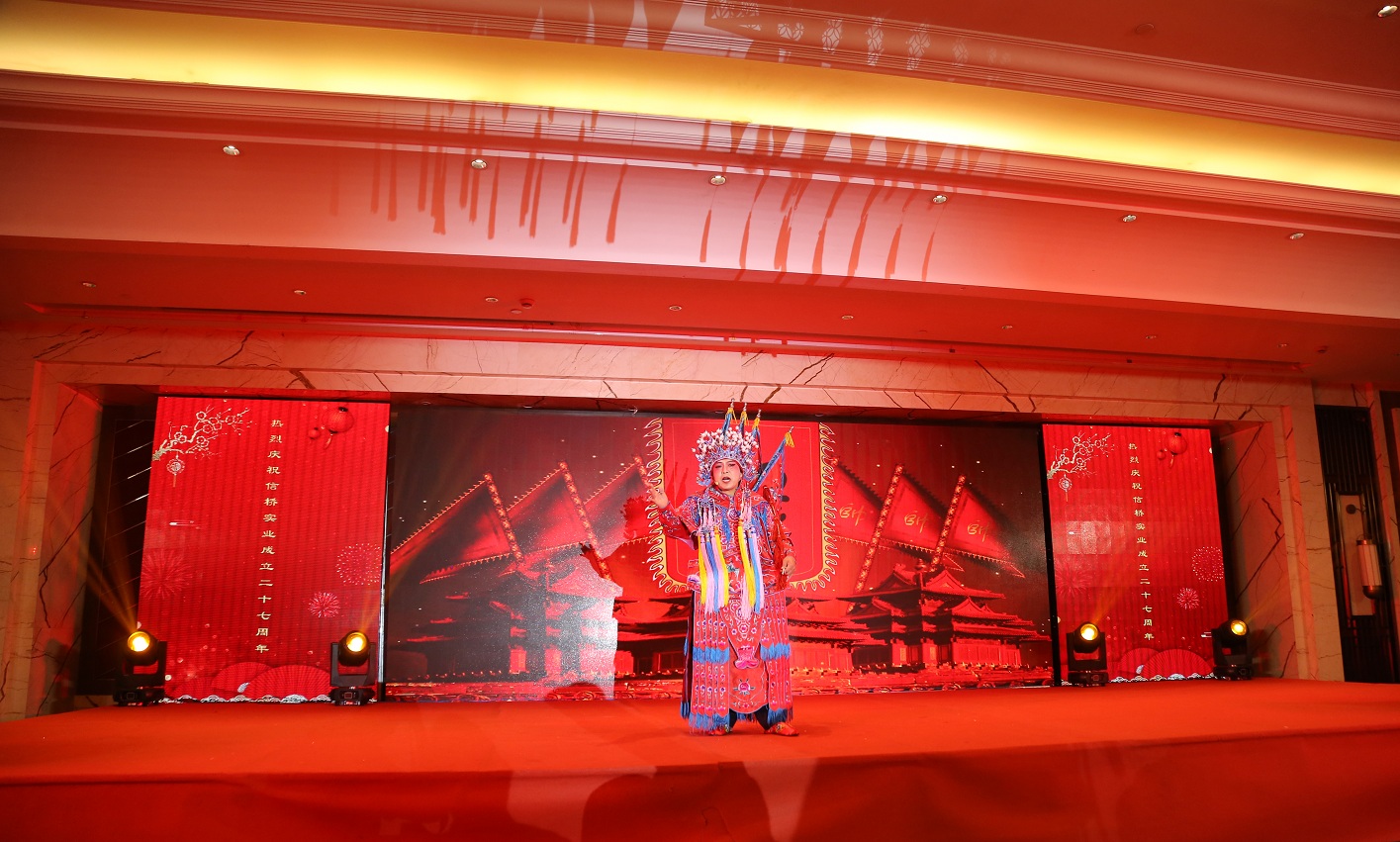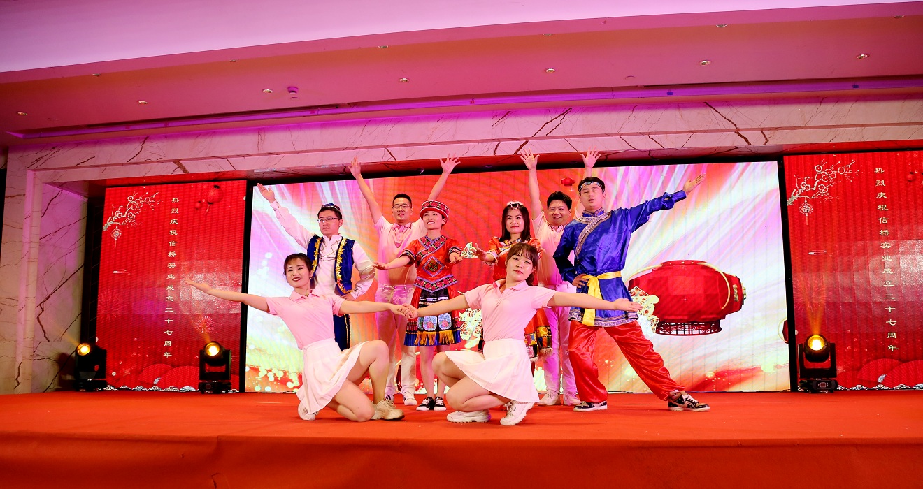 此次慶典晚宴參加人員除了信橋全體員工之外,還有部分老領(lǐng)導(dǎo)和老朋友,大家共同分享了信橋二十七周年的喜悅與精彩。八號上午,慶典開始之前,演員們辛勤排練,燈光師、音響師共同配合,所有人為了晚會都在努力。下午4點(diǎn)58分,晚會正式開始,全體員工與領(lǐng)導(dǎo)集體合影,信橋隊(duì)伍不斷在擴(kuò)大。今年的晚會添加新的互動方式,采用了直播和紅包雨的新形式,是信橋周年慶典的一次新的嘗試。