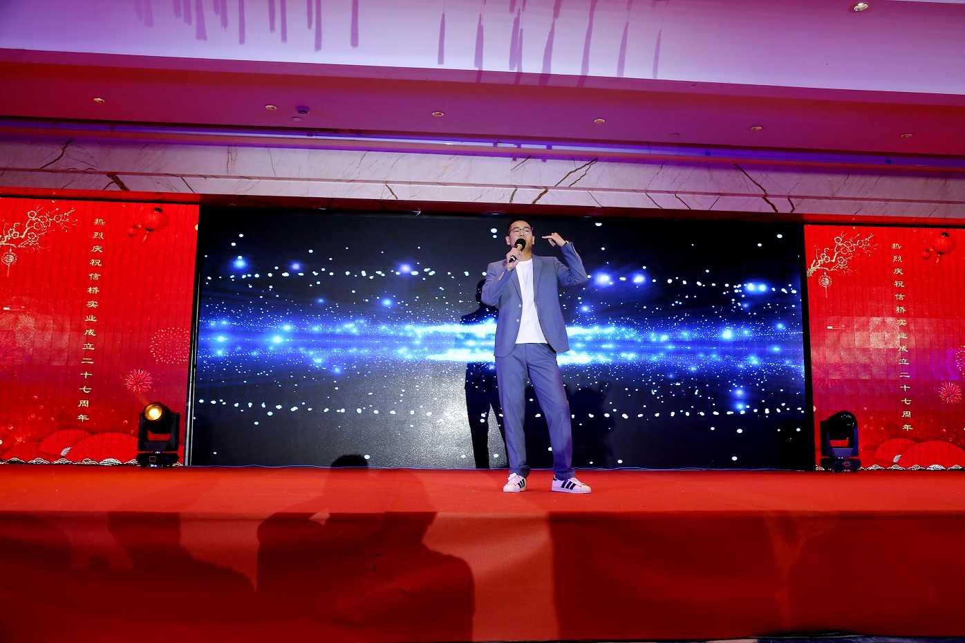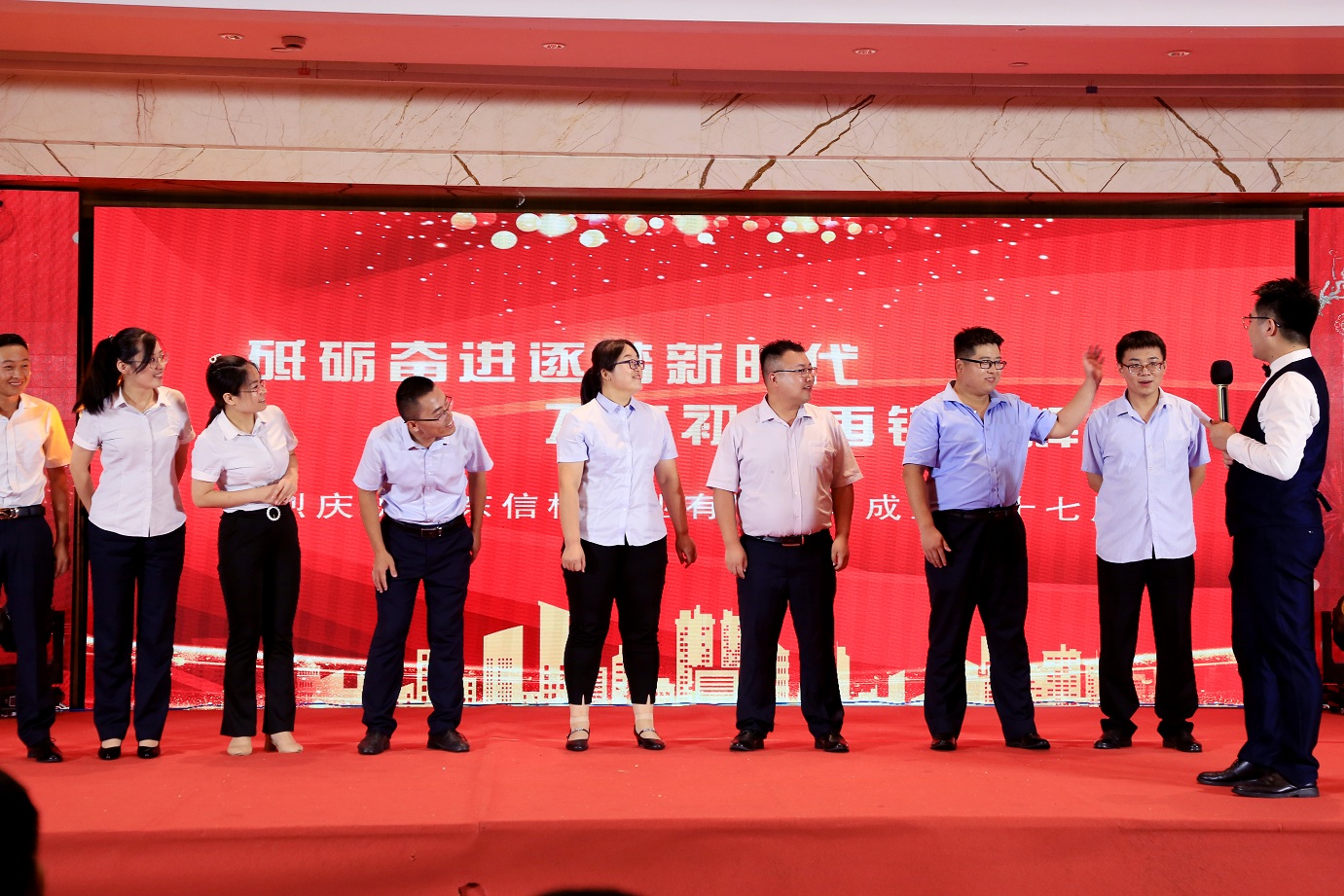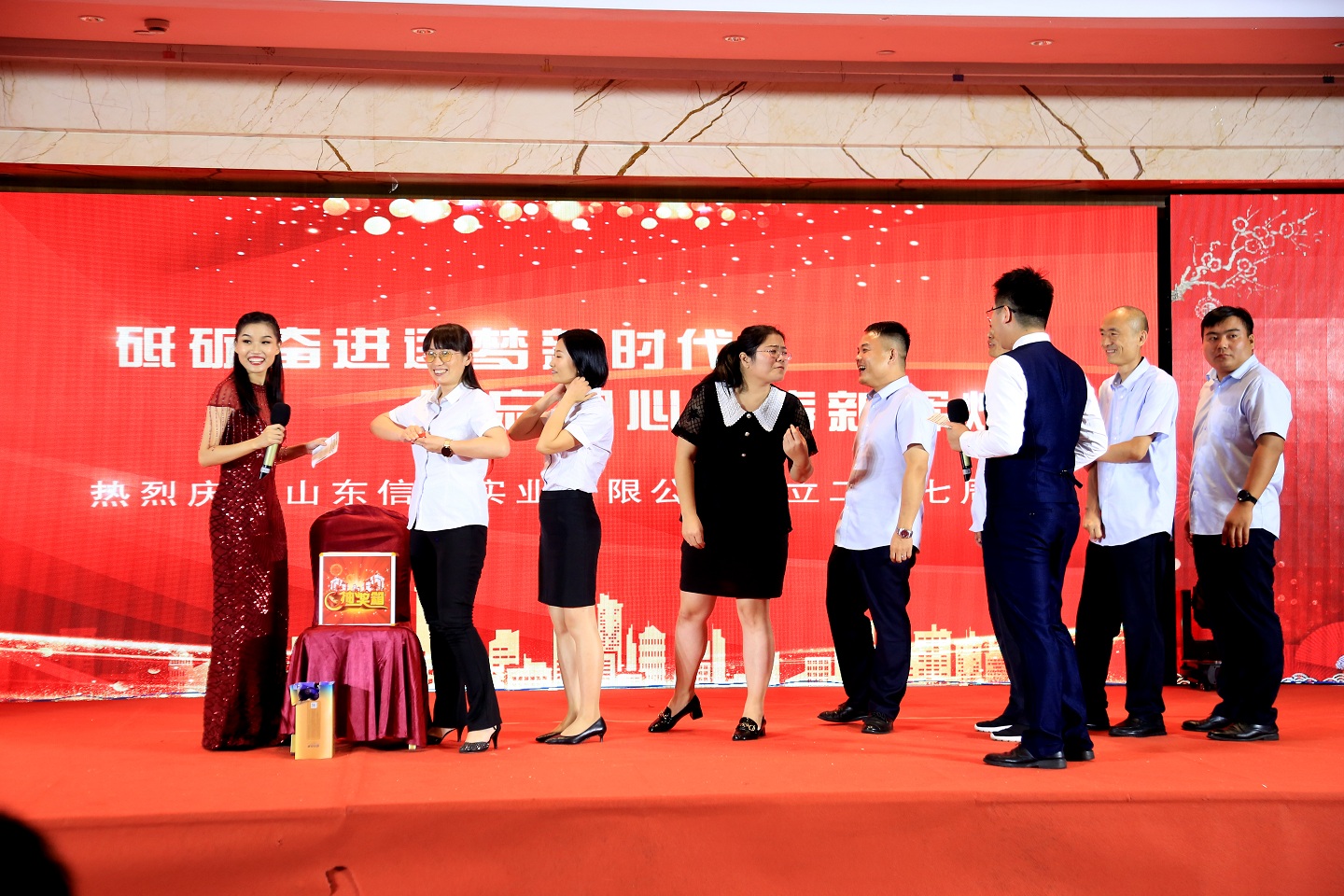 此次慶典晚宴參加人員除了信橋全體員工之外,還有部分老領(lǐng)導(dǎo)和老朋友,大家共同分享了信橋二十七周年的喜悅與精彩。八號上午,慶典開始之前,演員們辛勤排練,燈光師、音響師共同配合,所有人為了晚會都在努力。下午4點(diǎn)58分,晚會正式開始,全體員工與領(lǐng)導(dǎo)集體合影,信橋隊(duì)伍不斷在擴(kuò)大。今年的晚會添加新的互動方式,采用了直播和紅包雨的新形式,是信橋周年慶典的一次新的嘗試。